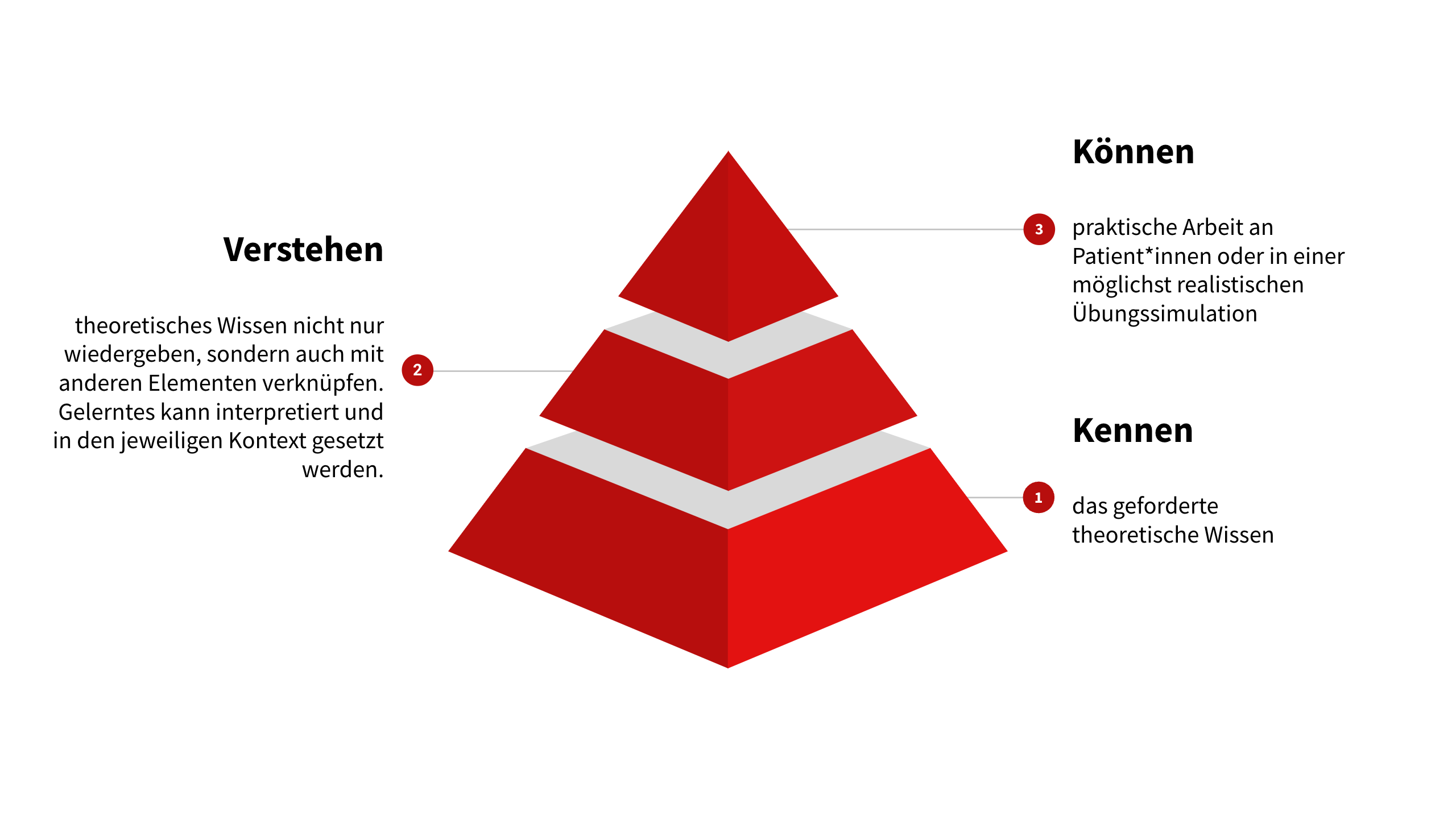 Die drei aufbauenden Kompetenzbereiche ‚Kennen‘, ‚Verstehen‘ und ‚Können‘